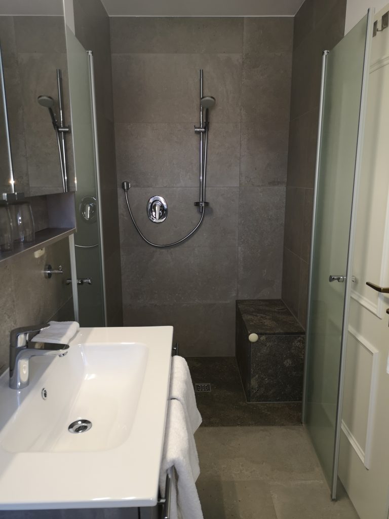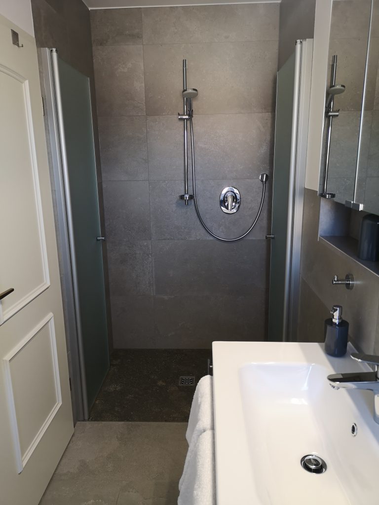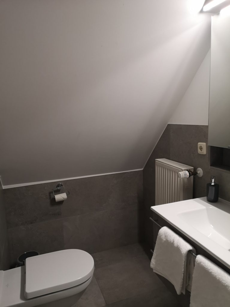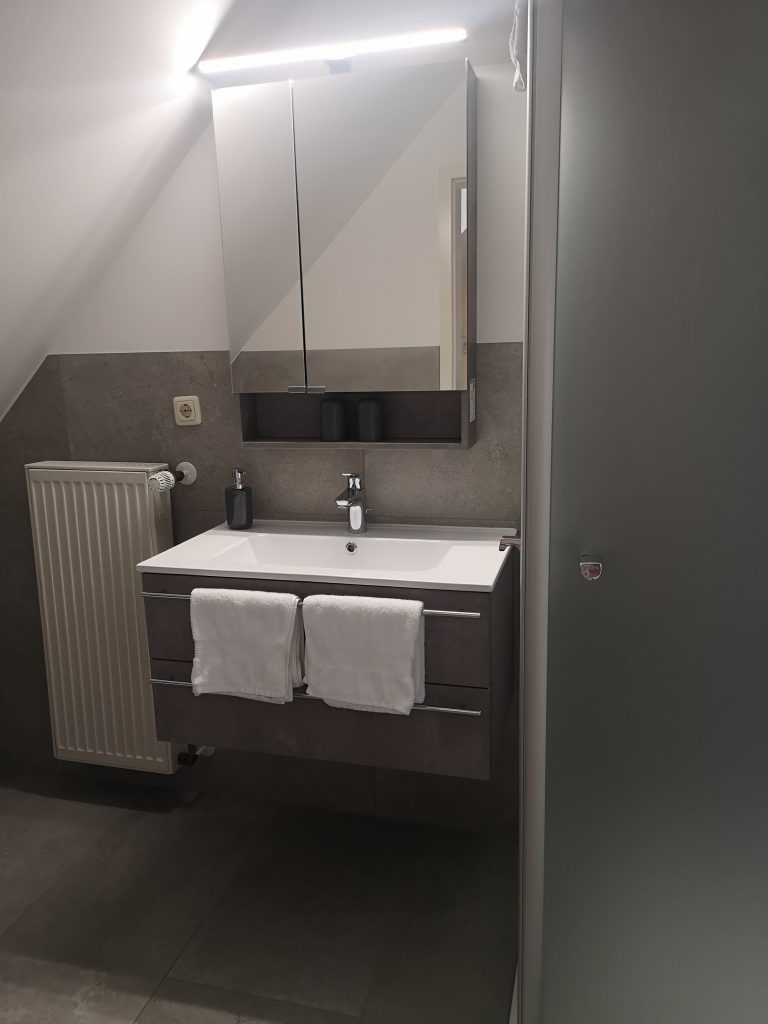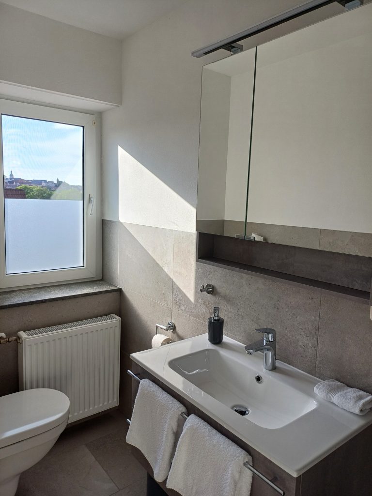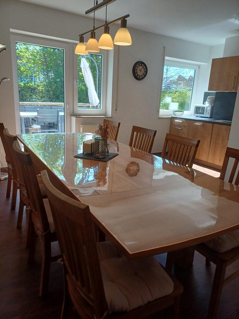 Die Ferienwohnung besteht aus 3 Doppelzimmern mit jeweils eigenem Bad mit WC und Dusche sowie einem Esszimmer und Wohnzimmer. Die gut ausgestattete Küche verfügt über einen Kochherd, Spüle, Spülmaschine, Kühl- /Gefrierkombination, Eierkocher, Filter-Kaffeemaschine, Wasserkocher, Handrührgerät, Mikrowelle und Toaster. Außerdem gibt es Kaffee- und Teezubehör und auch Kochutensilien wie Essig, Öl, Pfeffer und Salz.
