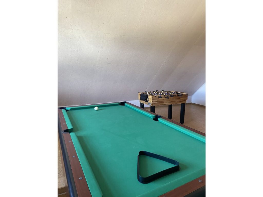 Im darüberliegenden geräumigen Dachboden befindet sich ein weiterer Aufenthaltsraum mit Billardtisch und Kickerkasten.